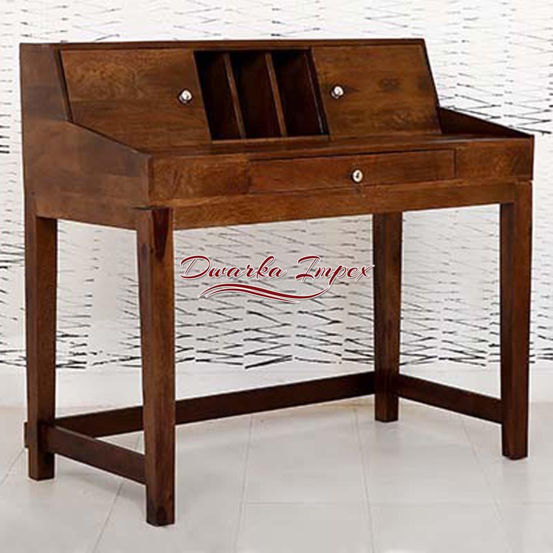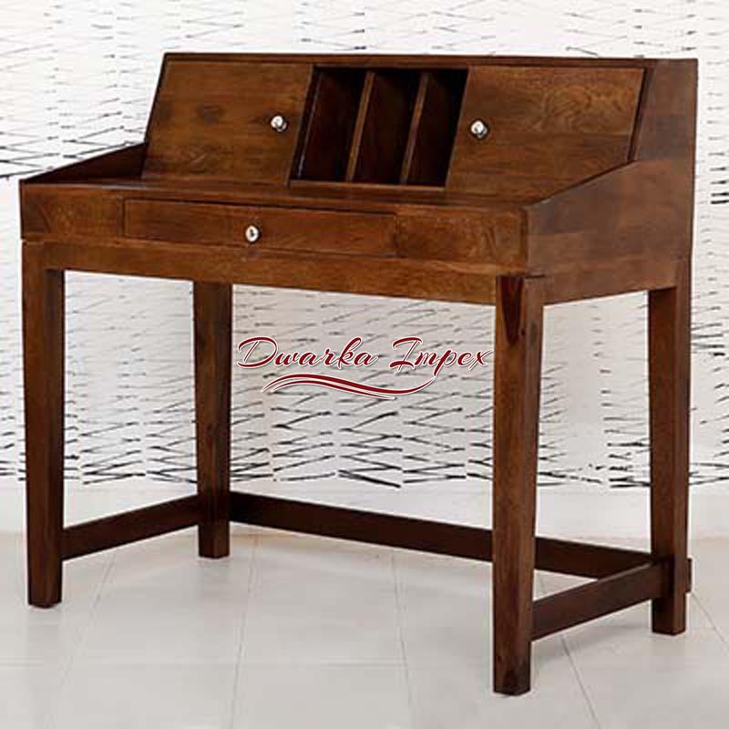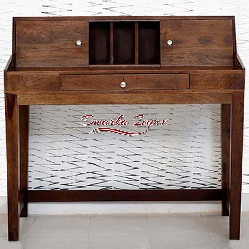 Looking at this table at first sight gives an impression of a piano, but it is not. It has an appeal of ancient architecture. It is made with sheesham wood and is strong and durable and has multiple drawers and shelves to store in your requisites. It has broad leg space making it easy to work for long hours.