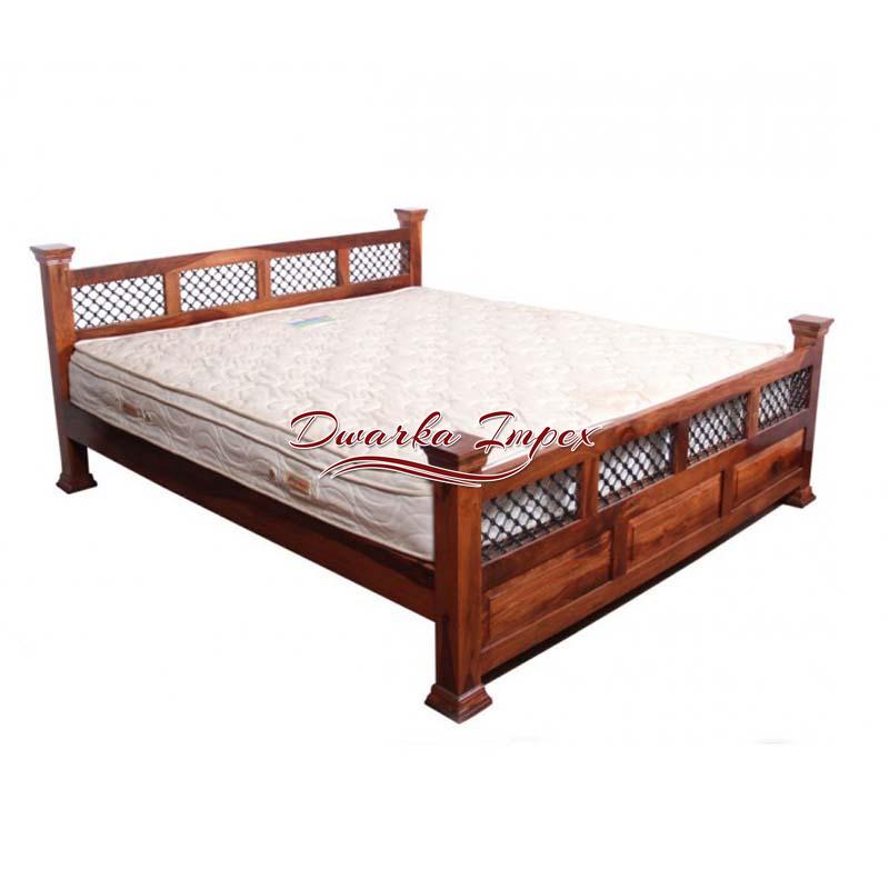 Revive yourself on this cozy double bed with an attractive mesh design on its back rest as well as foot rest. The bed is made of good quality treated wood and given a glossy brown textured polish, which makes the bed very durable and strong. Upgrade the appearance of your bedroom with this very classy and cozy bed.