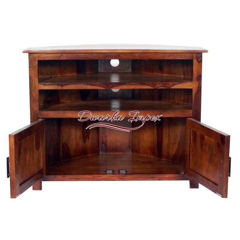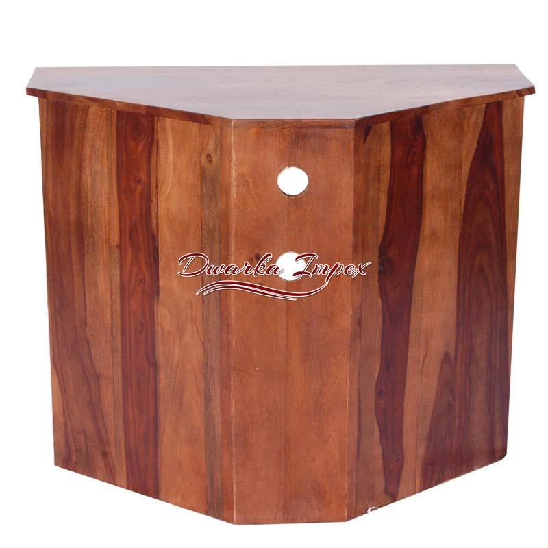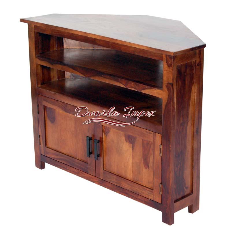Feel the thrill of the suspense movie with a nicely rested TV on this nicely TV Corner designed from Sheesham wood. The shape of the TV corner is designed to fit to any kind of TV. The central shelves are perfect for holding additional gadgets . The TV corner is augmented with a cabinet making it a piece of high storage utility. Last but not the least the natural wood finish makes this item a centre of attraction of your living room.