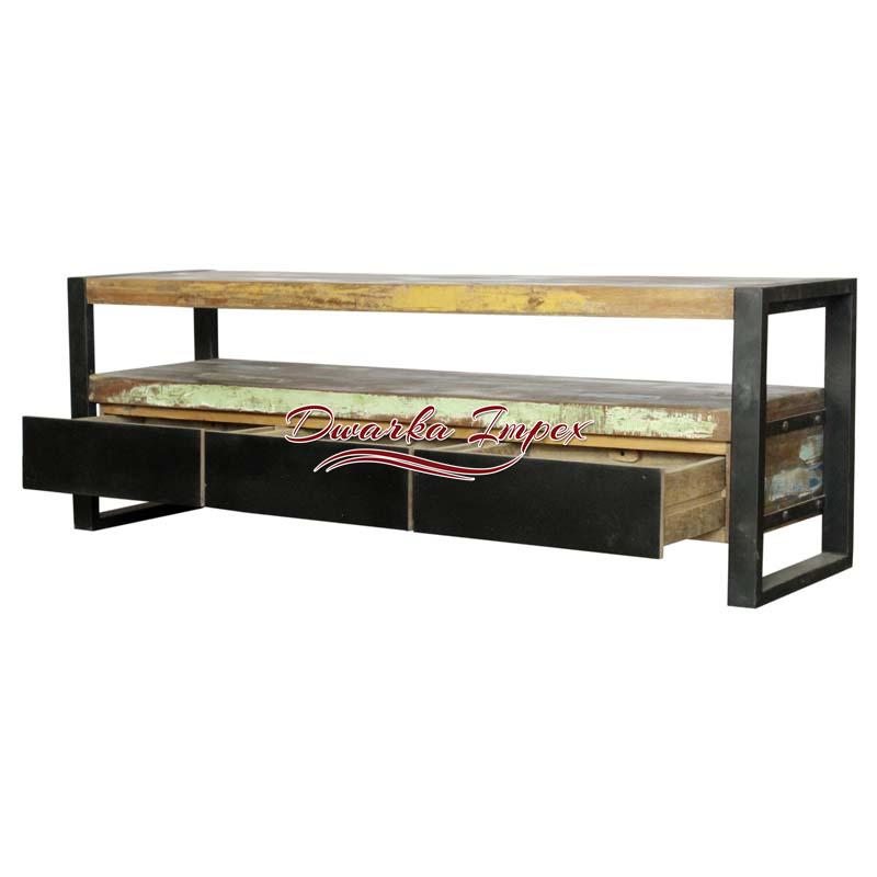 Feel the gluttony of elegance and simplicity with Contemporary panache wooden iron entertainment unit.
