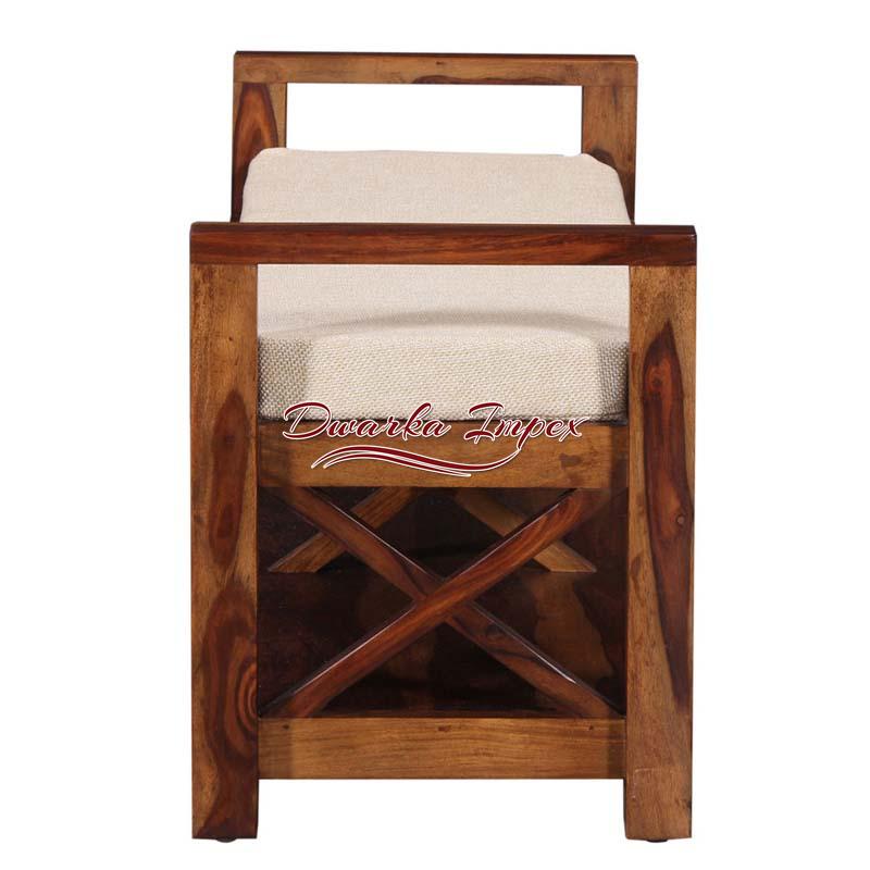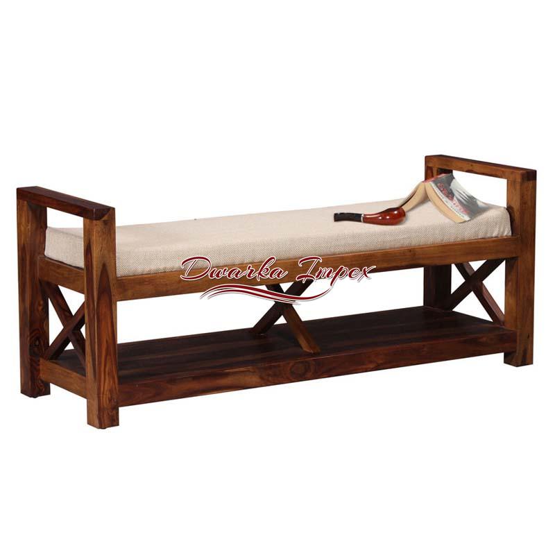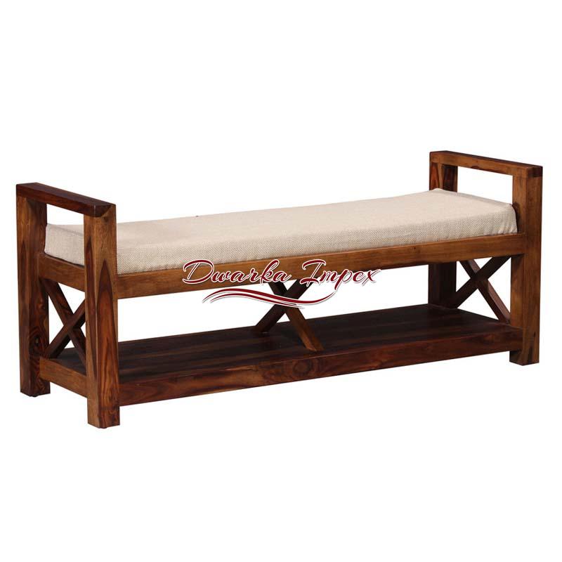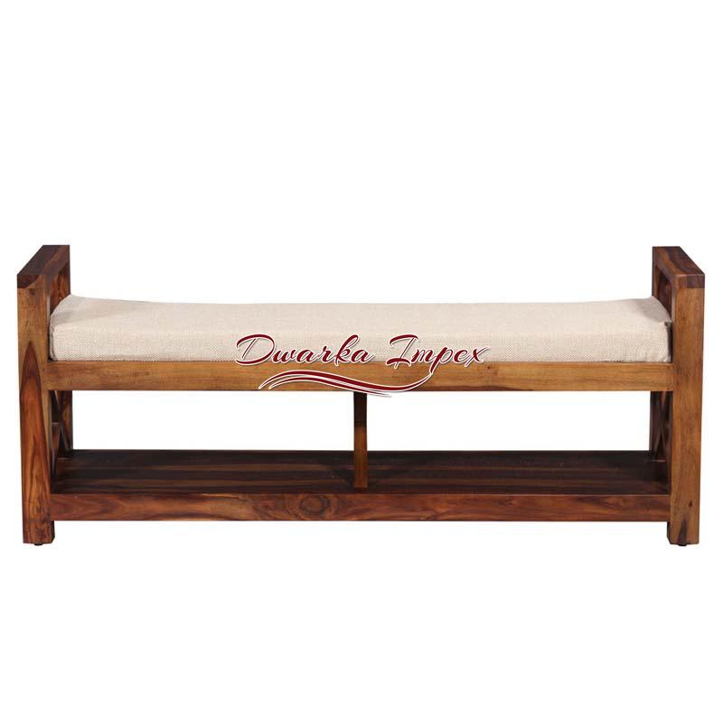 Bring home this Contemporary Wooden Bench with Cushion and add more grace to your home. This spectacular bench has adorable design and has decent sides with cross-designs. It has a shelf-like structure below the seat to provide you extra storage and make it look different from other wooden benches.