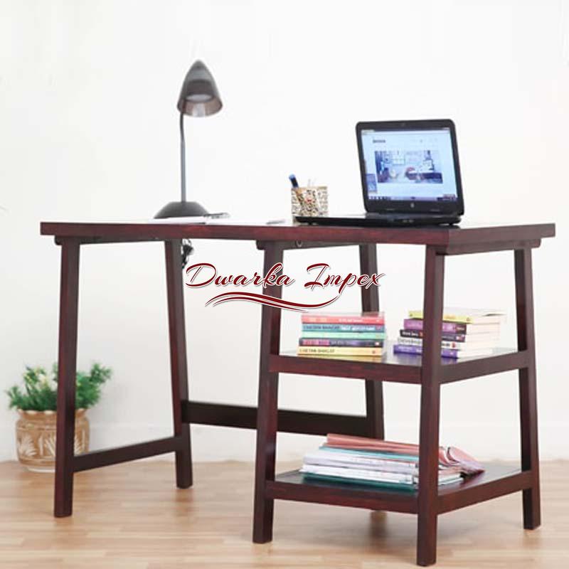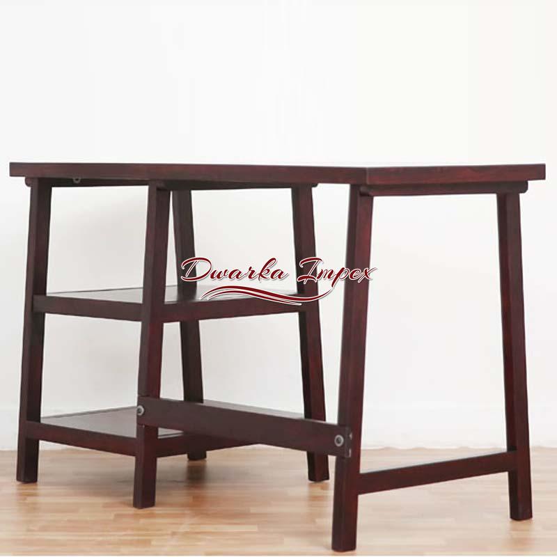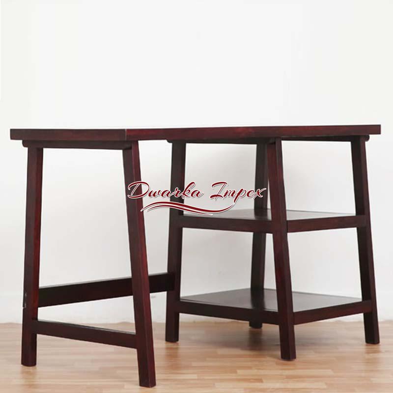 A simple and conventional wooden table reflects ancient architecture with minimal design. It is made of fine quality wood meant for strength and durability. It is polished in brown smooth finish and has two shelves on its side to facilitate easy management of books and files. It can be used efficiently for study, work or reading purpose with generous leg space, for easy long hours of work or study.