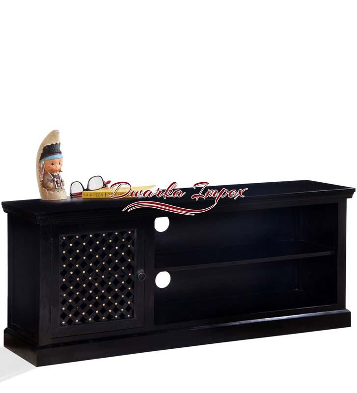 Dazzling Black Wooden Entertainment Unit will make your living room look classy, and sizzling. The eye-catchy home furniture is made of quality wood, and has contemporary body design. It comes with a large cabinet and two shelves to store your TV accessories and decorative items.