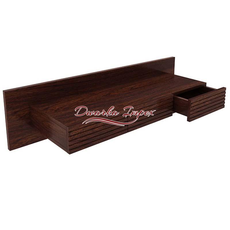 A very sleek and designer wooden table top attached to the wall is very much in vogue. It is made of sheesham wood and is strong and durable. It has an engaging striped brown polish with three drawers. It can be used to keep laptop, or any other tablets, etc. It can be adjusted according to the height required and then fixed on to the wall. Such wall fixed furniture makes the room look clutter free.