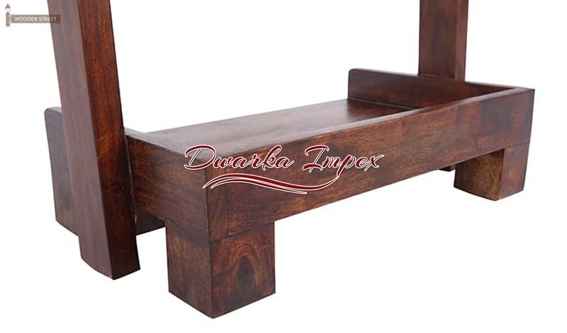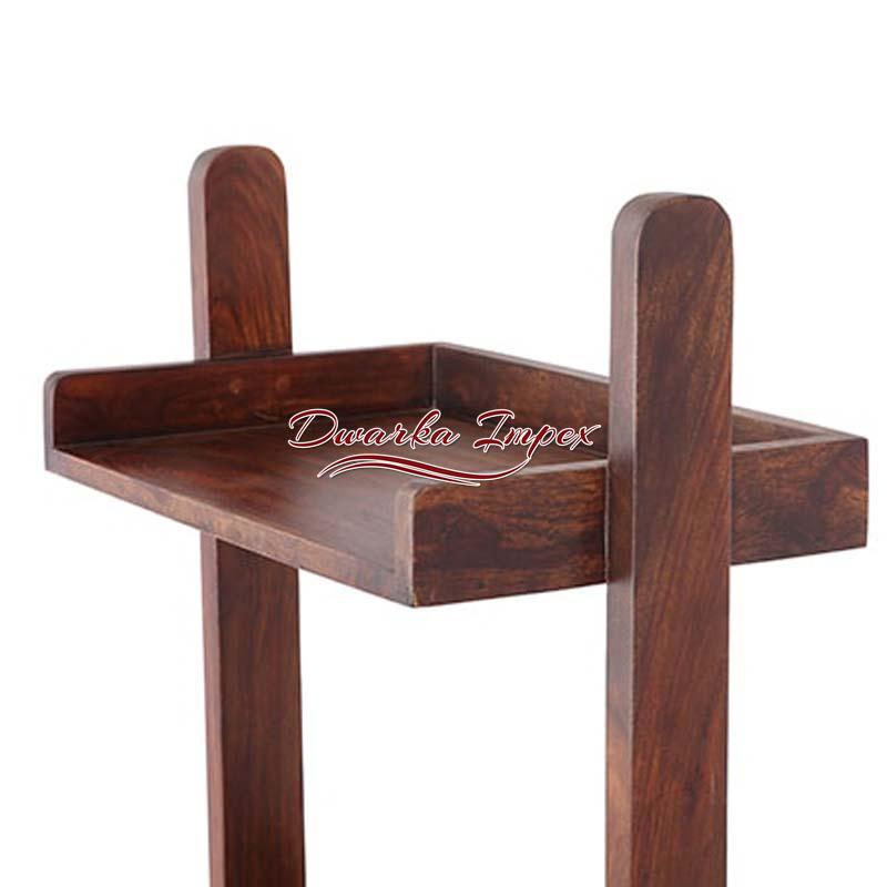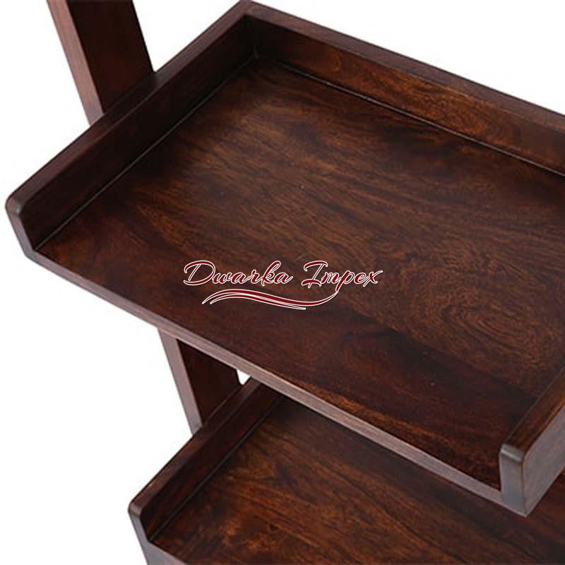 A simple yet a design that will engross you in its individuality. It has five shelves and can be placed anywhere, in a corner of a room or kitchen or wherever desired, as it is easily movable. On can flaunt artefacts magazines, books frames, crockery, etc. or anything as per your requirements on it. It is made of sheesham wood, which is strong and durable. It stands tall on four legs for perfect balance.