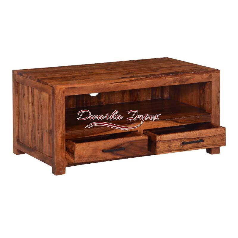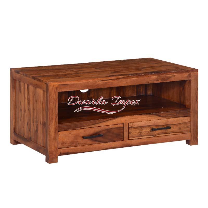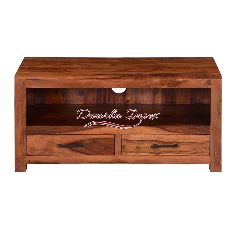 Exotic Wooden Entertainment Unit is contemporary, stylish, and lovely. The adorable TV unit has two drawers at the bottom, and a large open shelf to store all TV accessories and decorative items. It comes with remarkable wooden finish.