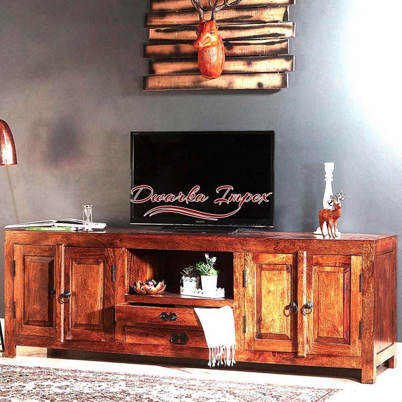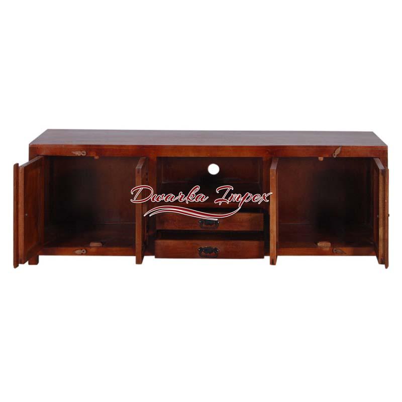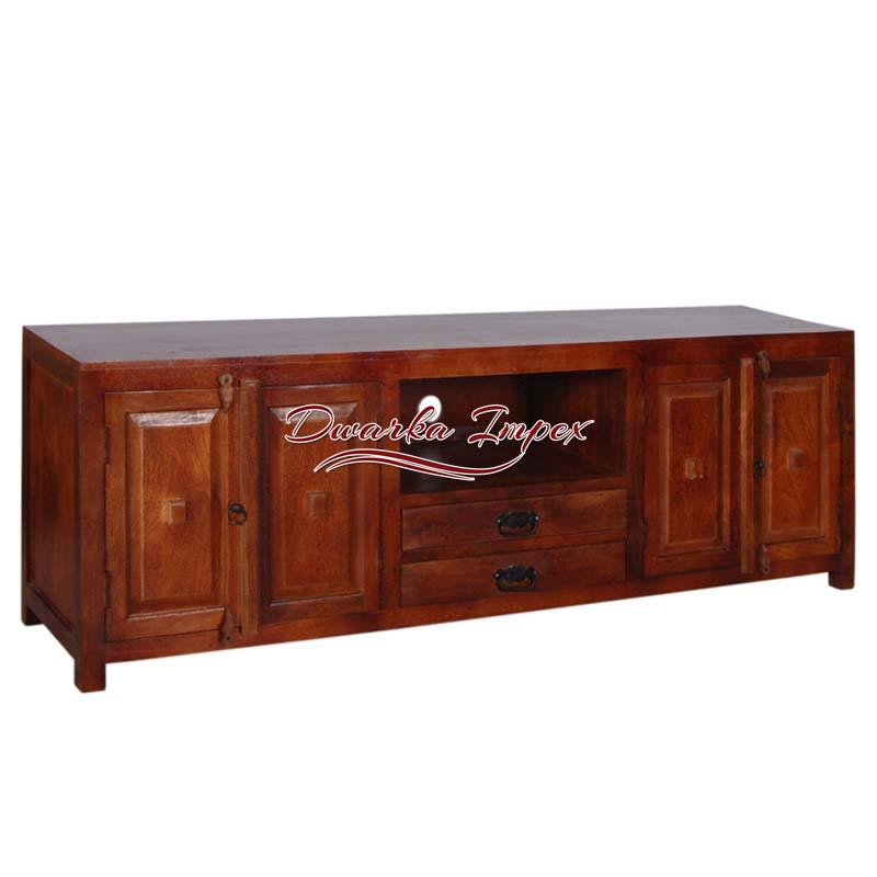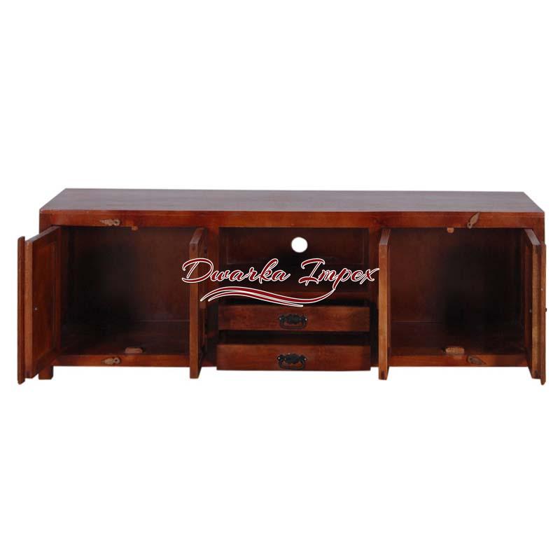 Bring this Eye-feasting Royal Wooden Entertainment Unit home and rekindle the overall look of your home. It is made of quality wood, and decorated with superior wood finish. It comes with four cabinets, two drawers and one open shelf to accommodate TV accessories and decorative items.