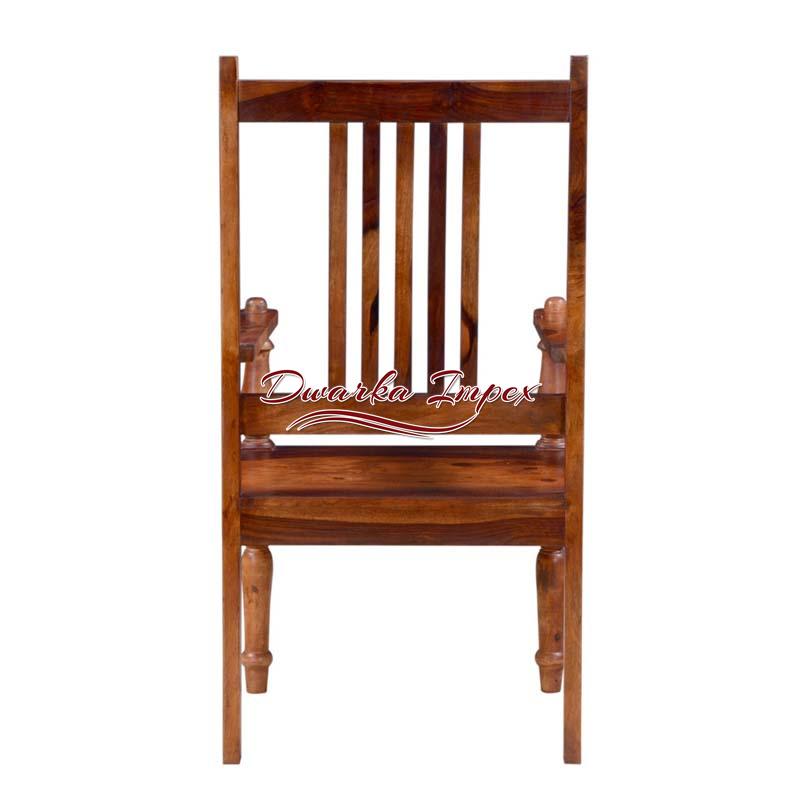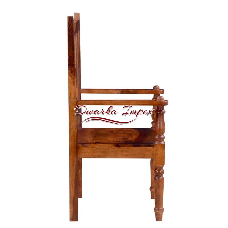 Bring home this Gorgeous Wooden Chair to add a new charm to your home. The beautiful chair has wonderful wooden finish on exterior and has carving on its legs and arm support. With a firm back support, you can enjoy seating on this dazzling chair for long hours.