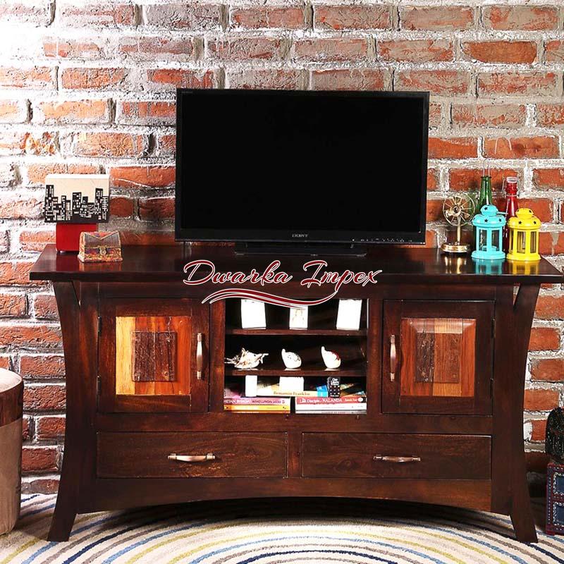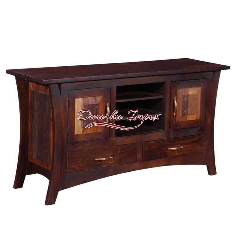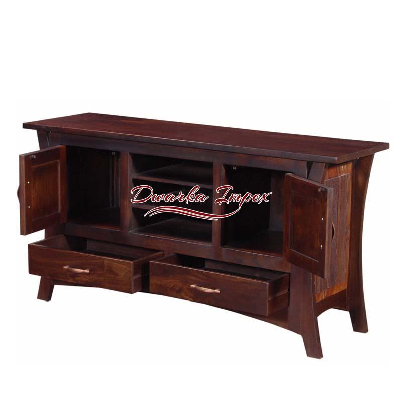 Gorgeous Wooden Entertainment Unit is an adorable living room furniture. The beautiful entertainment unit has distinct body design, exterior finish, and charm. It comes with two large cabinet, two drawers and two open shelves to store TV accessories and decorative items.