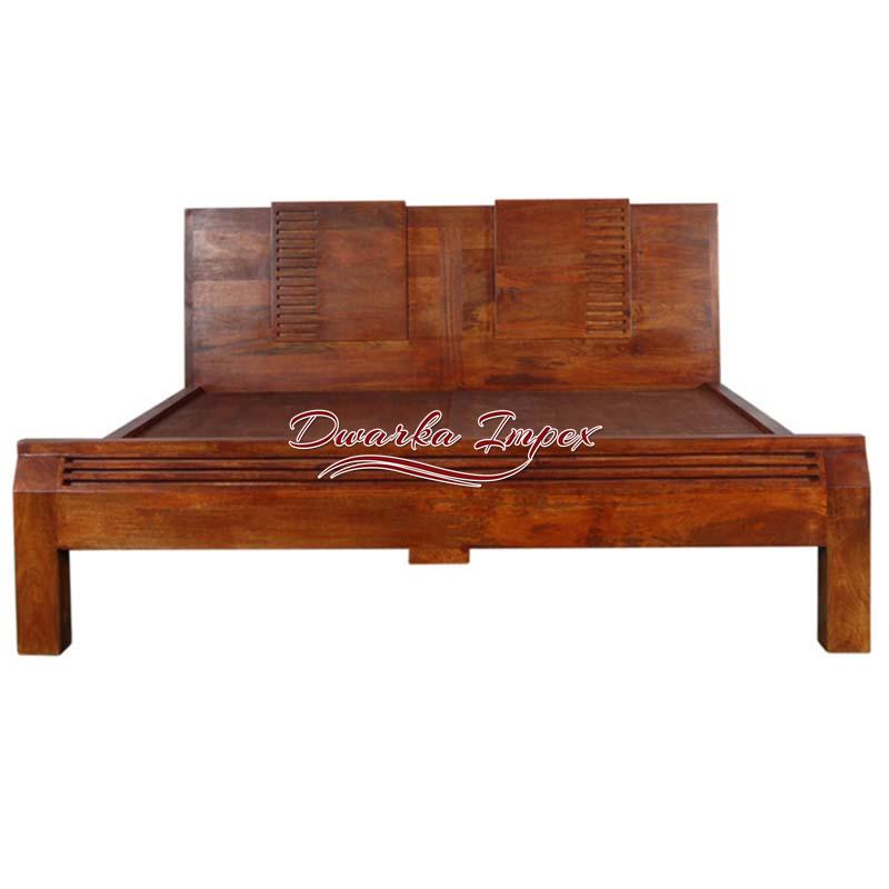 Beautiful wooden colored bed with side table. Highly sophisticated and an elegant piece of furniture. Lot of space available in the side tables.
