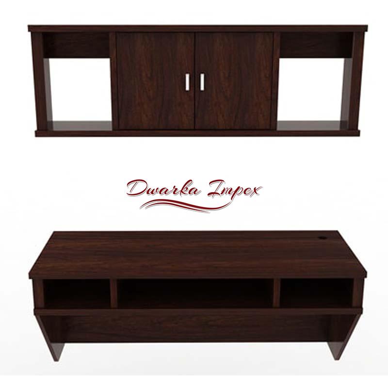 This piece of architecture is pure design with service. It is made of treated wood and is durable and strong. It is accompanied with a wooden unit that can be fixed in accordance with the table or otherwise. The table unit can be secured at the desired height. It has been provided with three divided grooves to keep work related books or files. High wall fixed furniture makes the room look clutter-free and gives the notion of more space.