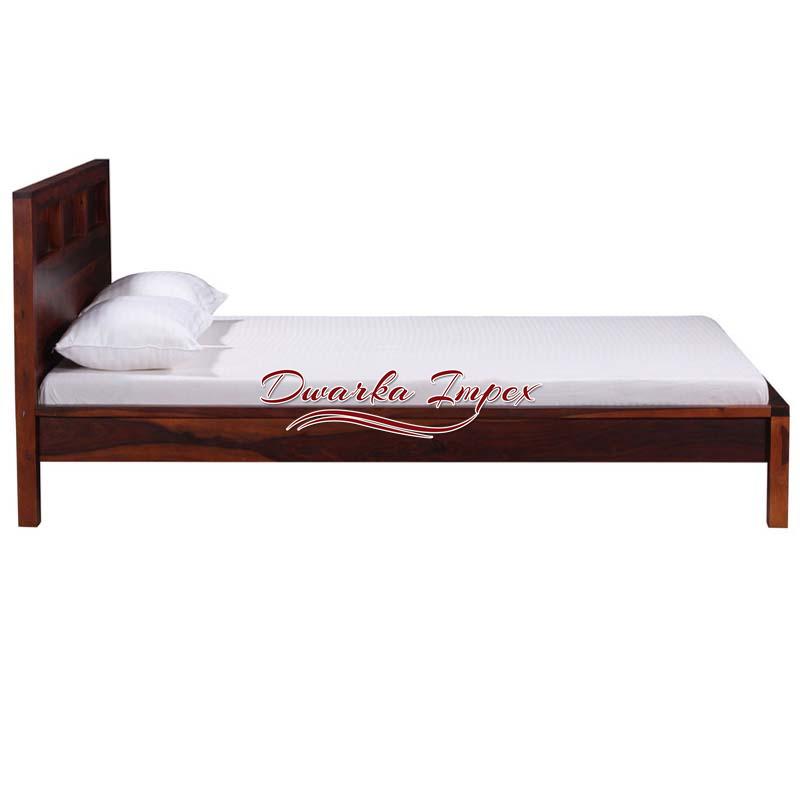 The modern and stylish looking bed with short height from the floor just look pretty and is most sought after object among the customers with refined tastes and preferences. The set looks complete and very much desirable with cushion and two small tables besides it.