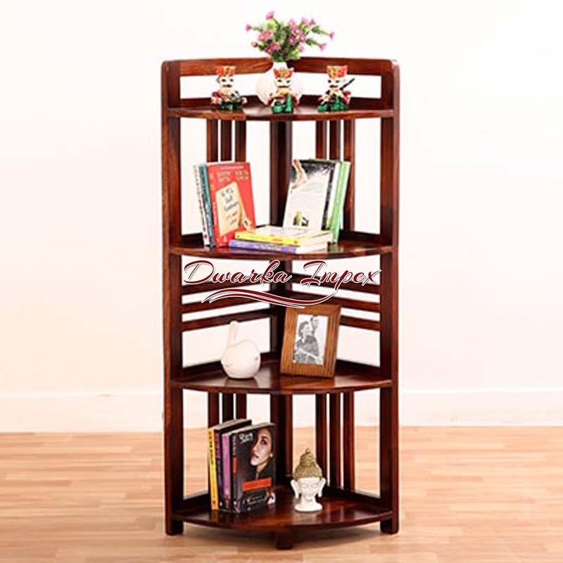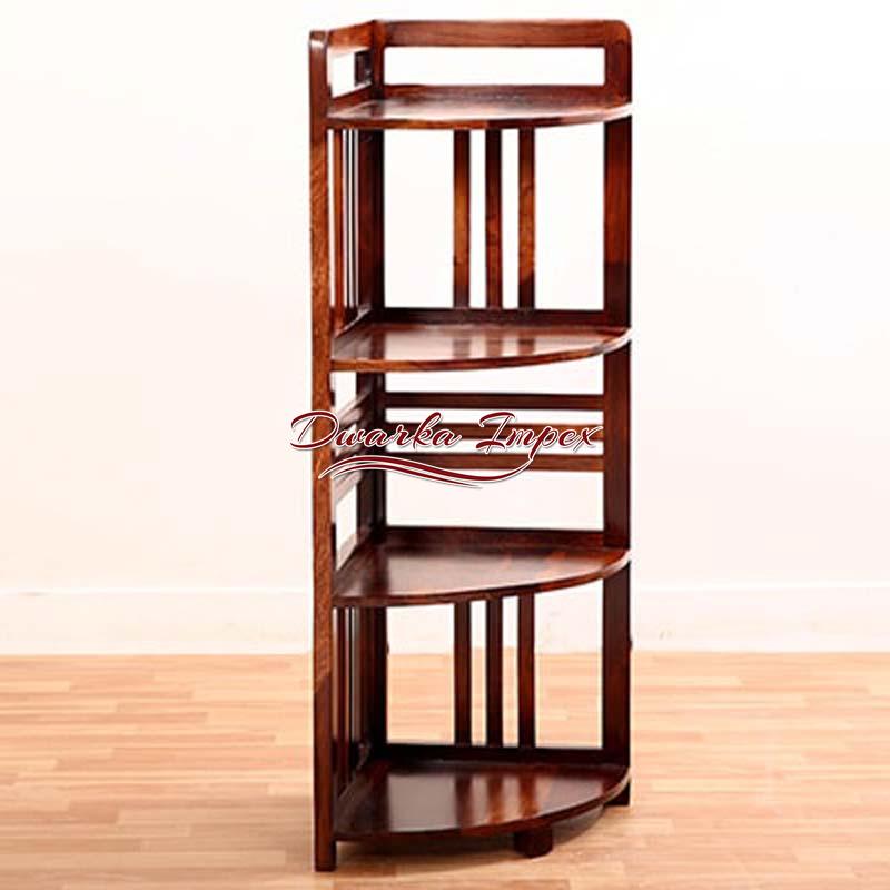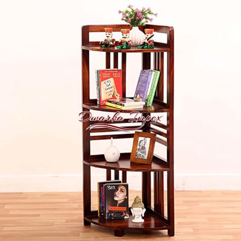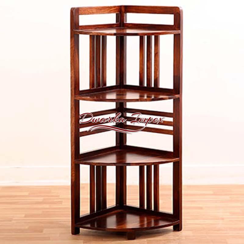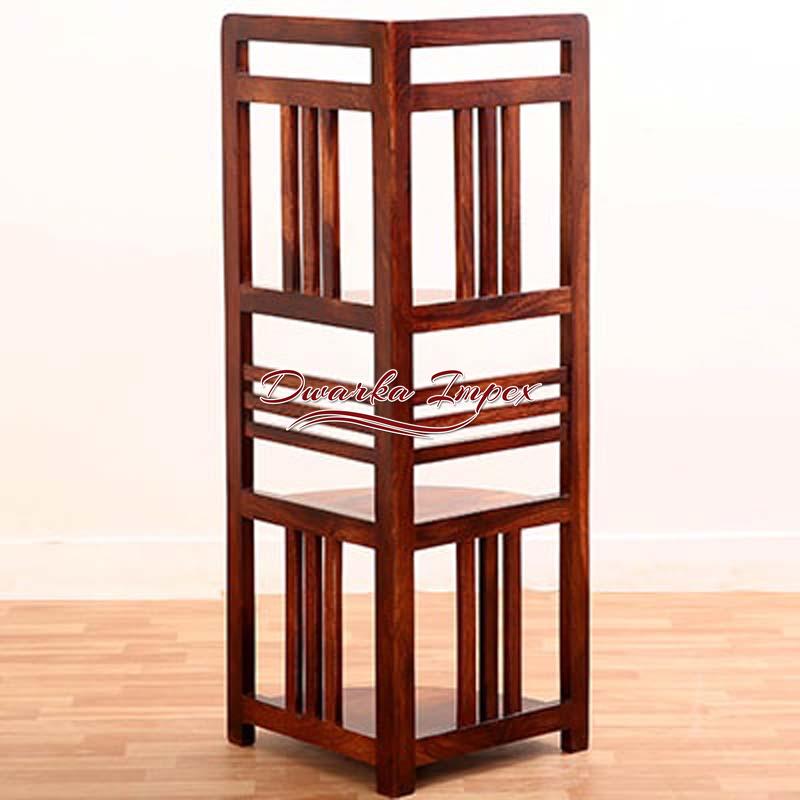 This is where simplicity and style blend together to give a product that is of utility and appealing too. An L shaped wooden unit comes with four shelves with horizontal and vertical stripes design. On can flaunt artefacts magazines, books frames, crockery, etc. or anything as per your requirements on it. It comes in rich brown polish and is made of sheesham wood, which is strong and durable.