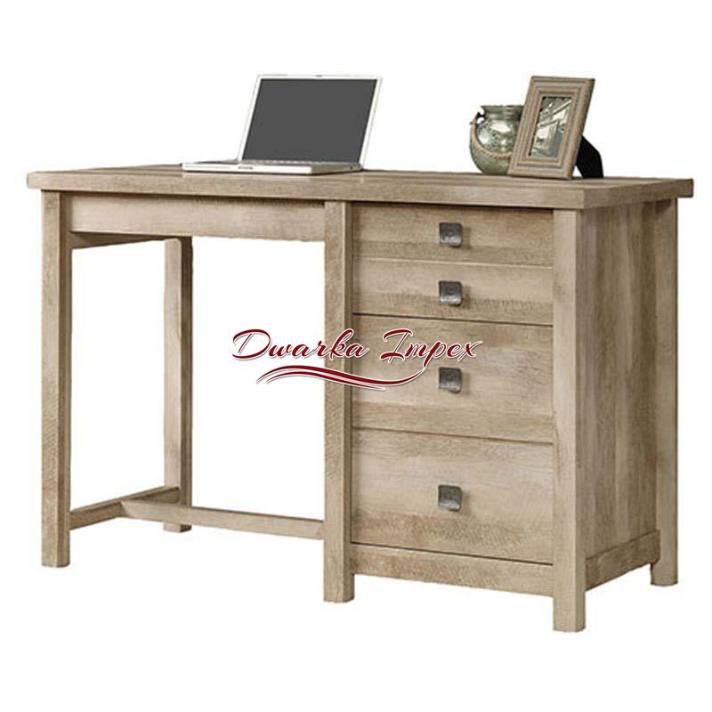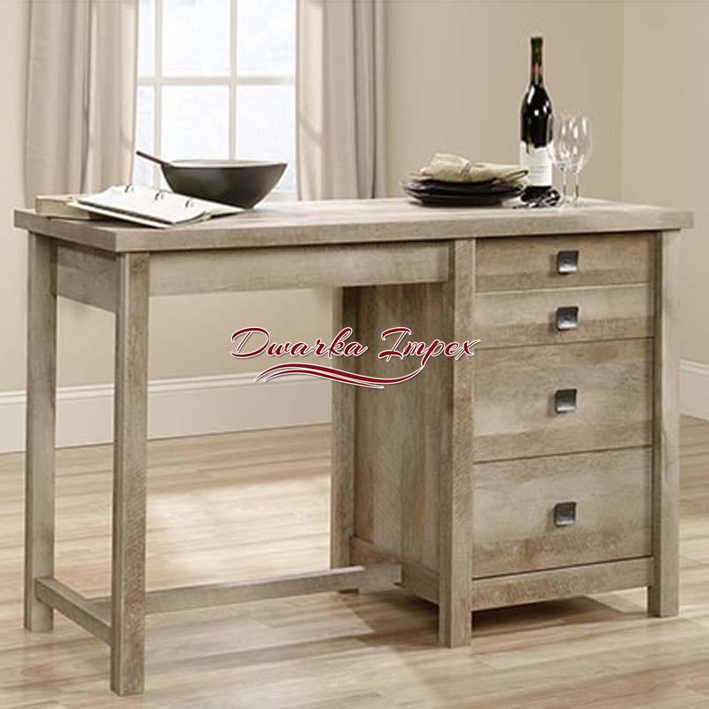 A distinct piece of architecture which made of treated wood and is durable and will last long. It has a smooth polish with light yet prominent grey shade which makes it outstanding. It has four drawers at one side with generous leg space, with a foot rest too for relaxed long hour of work or study. It can be used efficiently for study, work or reading purpose.