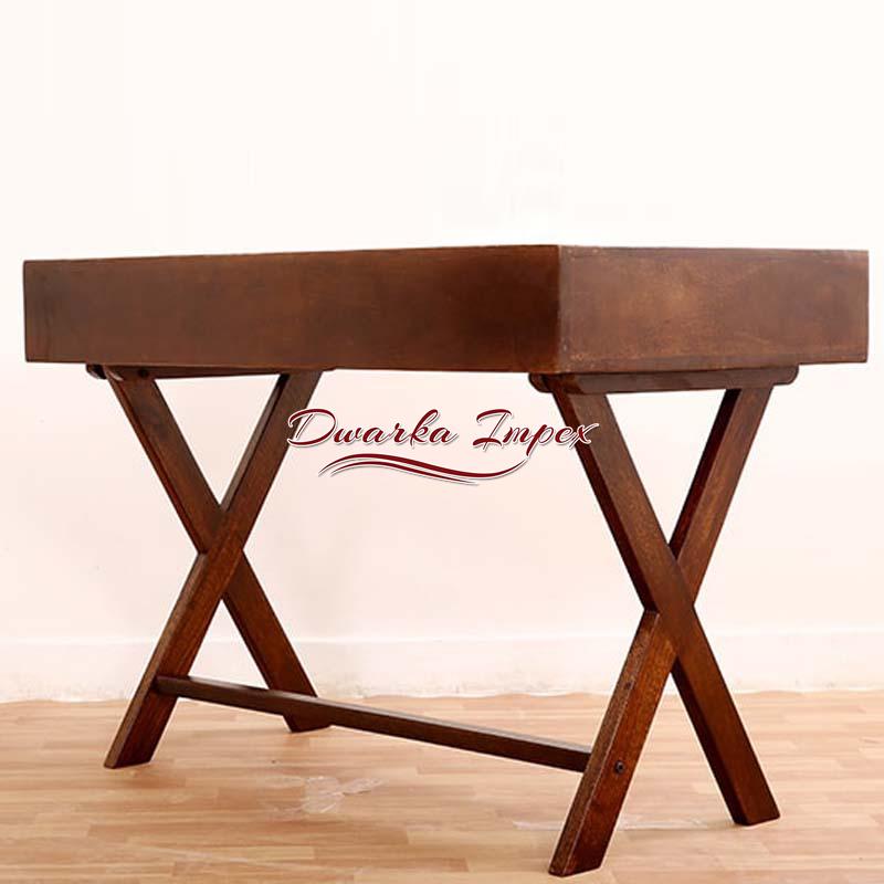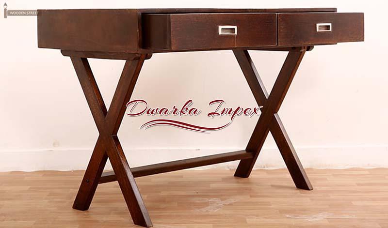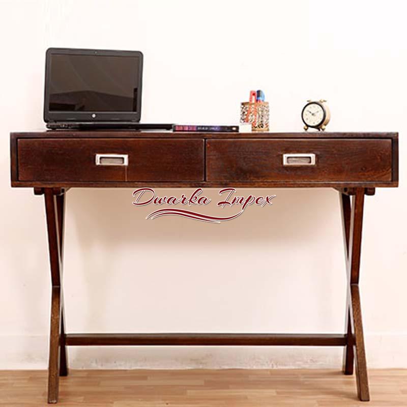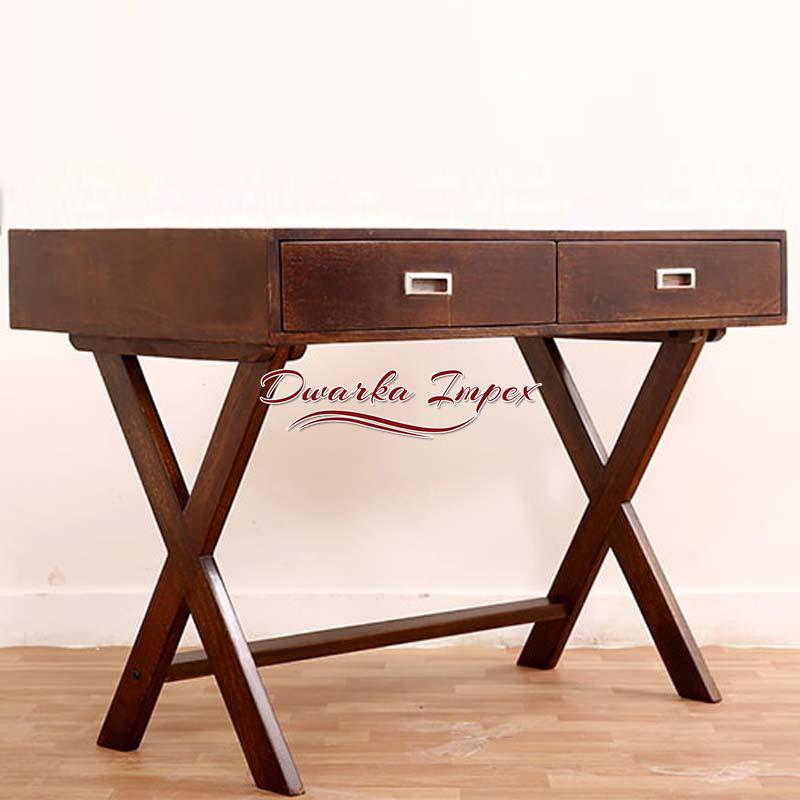 Attain this noble cross legged wooden table, designed very neatly. It is made of fine quality wood meant for strength and durability. It is polished in brown smooth finish and has two drawers to facilitate easy management of books and files. It can be used efficiently for study, work or reading purpose with generous leg space and a foot rest, for easy long hours of work or study. It is ideal for offices or study room.