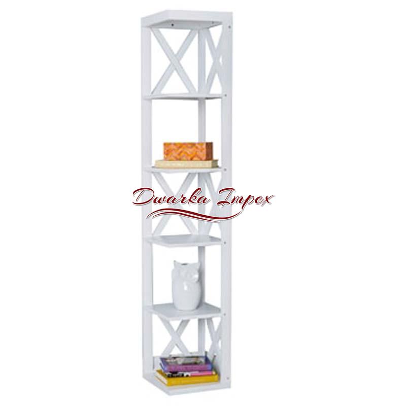 Opulent Wooden White L Shaped Shelf Unit with Amazing Crisscross Design