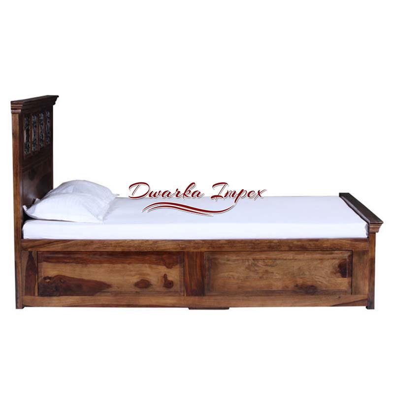An amazing looking bed- A master piece and is the cynosure of all eyes. This one falls in the category of must buy list. It has great design and a very high level of comfort. The color combination too is good with mixture of light and dark brown.