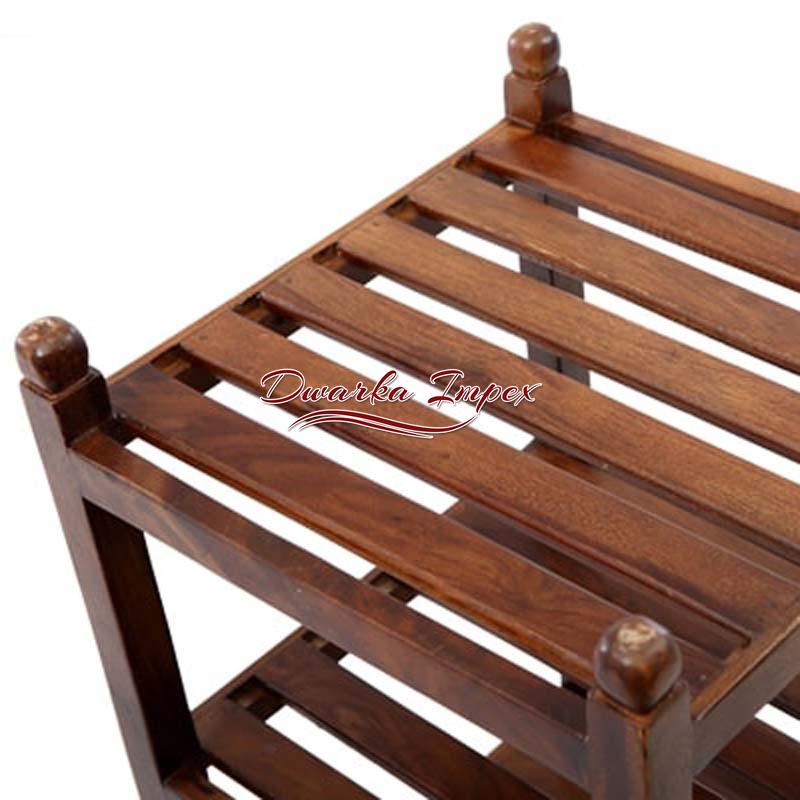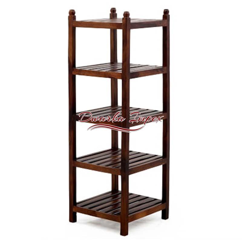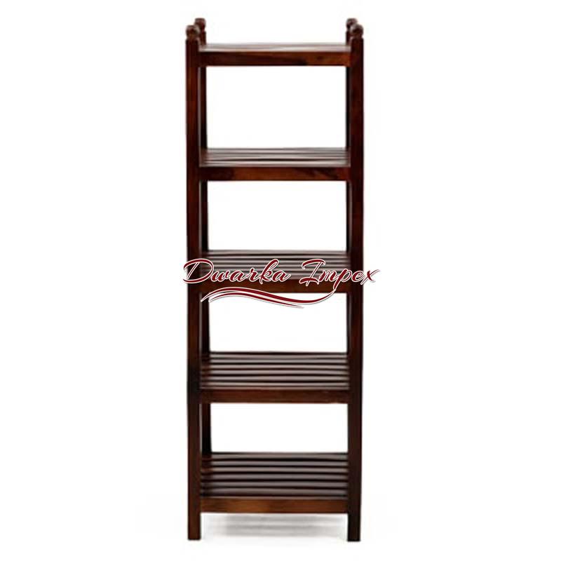 A very handy and useful wooden shelf unit is here to serve you the best it can. It has five shelves with striped base and gives a very traditional appeal. It can be used to keep immediate requirements within your reach and is easily movable. It is made of sheesham wood, which is strong and durable. It stands tall on four legs for perfect balance.
