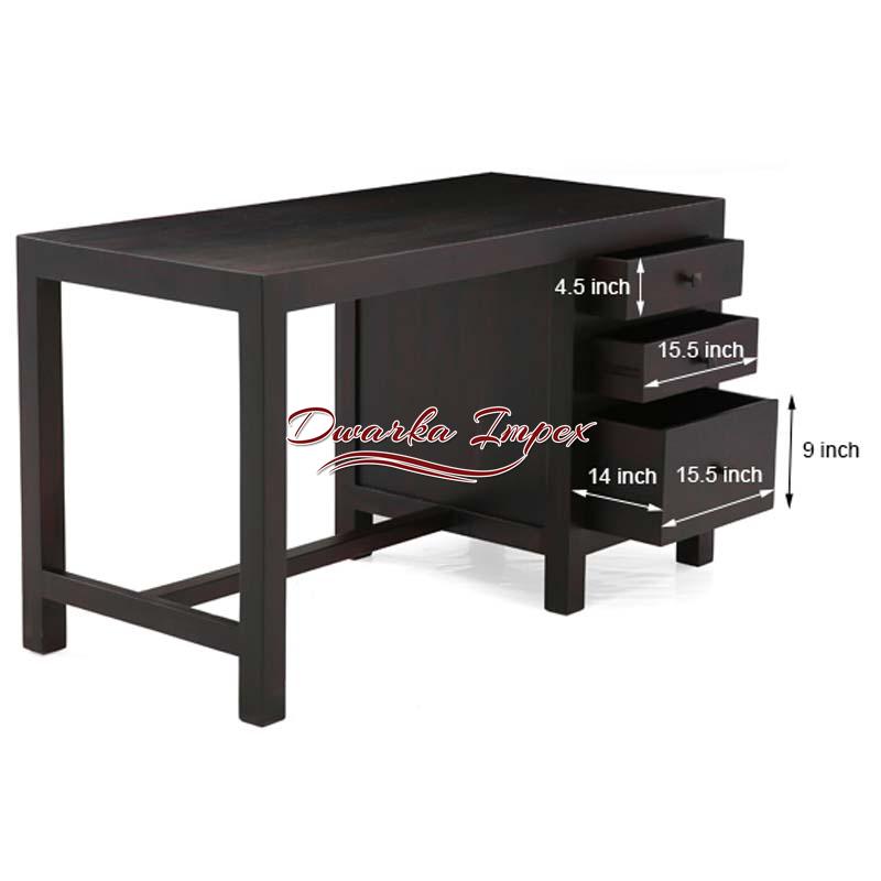 This is exactly what one needs to feel at ease while working or studying. It is made of fine quality wood meant for strength and durability. It is polished with sheer black smooth finish and has three drawers to facilitate easy management of books and files. It can be used efficiently for study, work or reading purpose with generous leg space and a foot rest, for easy long hours of work or study. It is ideal for offices or study room.