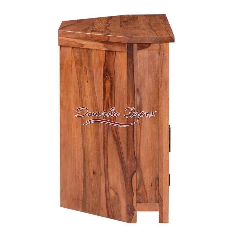 Beautify your living room with Remarkable Corner Wooden Entertainment Unit. The classic living room furniture has unique body shape and adorable wood finish on exterior. It comprises of one large cabinet and two shelves to accommodate TV accessories and decorative.