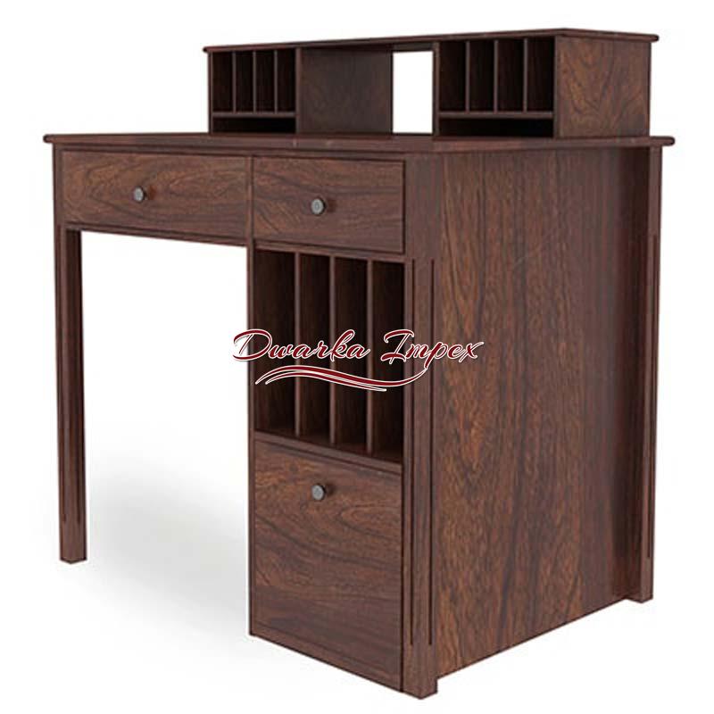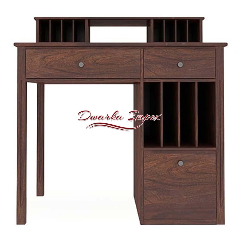 A novel designed study table made of sheesham wood is dependable and durable. It has been architected with inbuilt shelves and small blocks to keep your stationeries and books efficiently. It has three drawer and can be used for study as well as while working in a laptop. It ergonomic structure enables comfortable sitting for long hours.