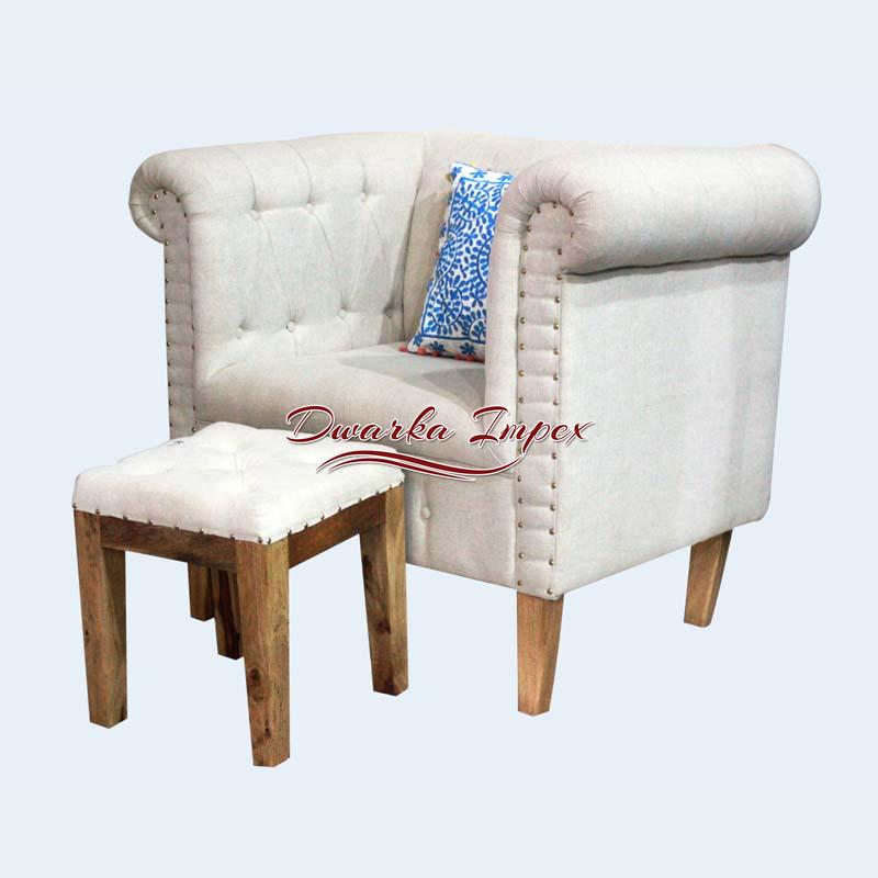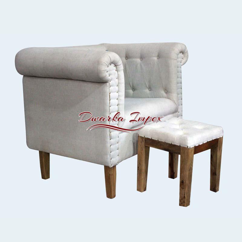 Set of Royal Sofa Chair and Stool is ideal to spruce up your drawing room. This fascinating soda chair has and looks fabulous. With off white colored cover, and amazing carving on exterior, it is a perfect home decorative for you.