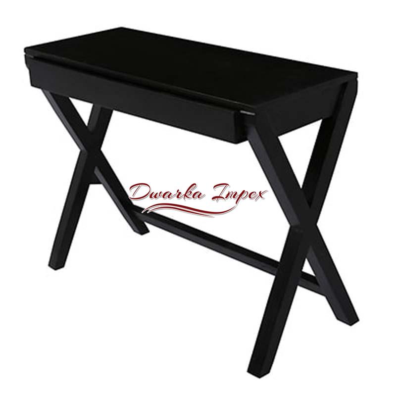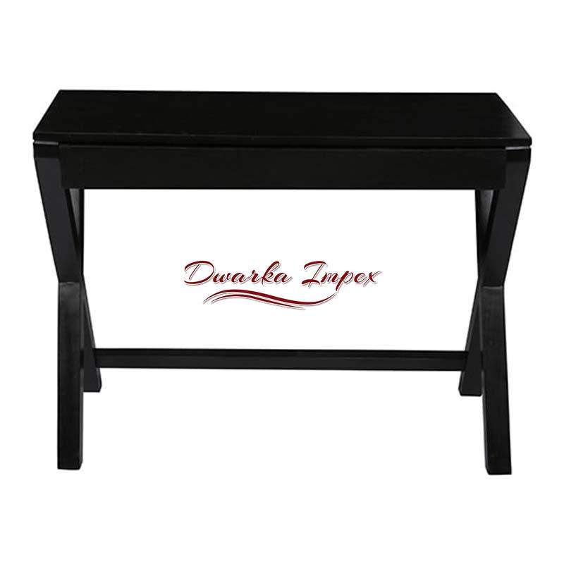 This black beauty is sure to attract your attention with its smart and compact design. This wooden table has fancy cross design that looks very appealing. It is sensibly designed so as to occupy less space and at the same time serve its purpose. It is made of fine quality wood meant for strength and durability. It is polished with sheer black smooth finish and has a sliding drawer to facilitate easy management of books and files. It can be used efficiently for study, work or reading purpose with generous leg space and a foot rest, for easy long hours of work or study. It is ideal for small or space constraint homes.