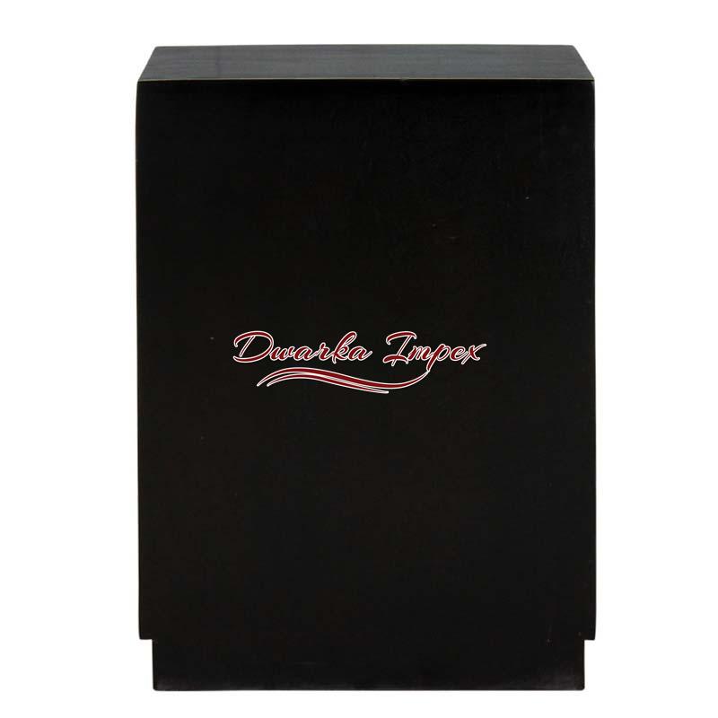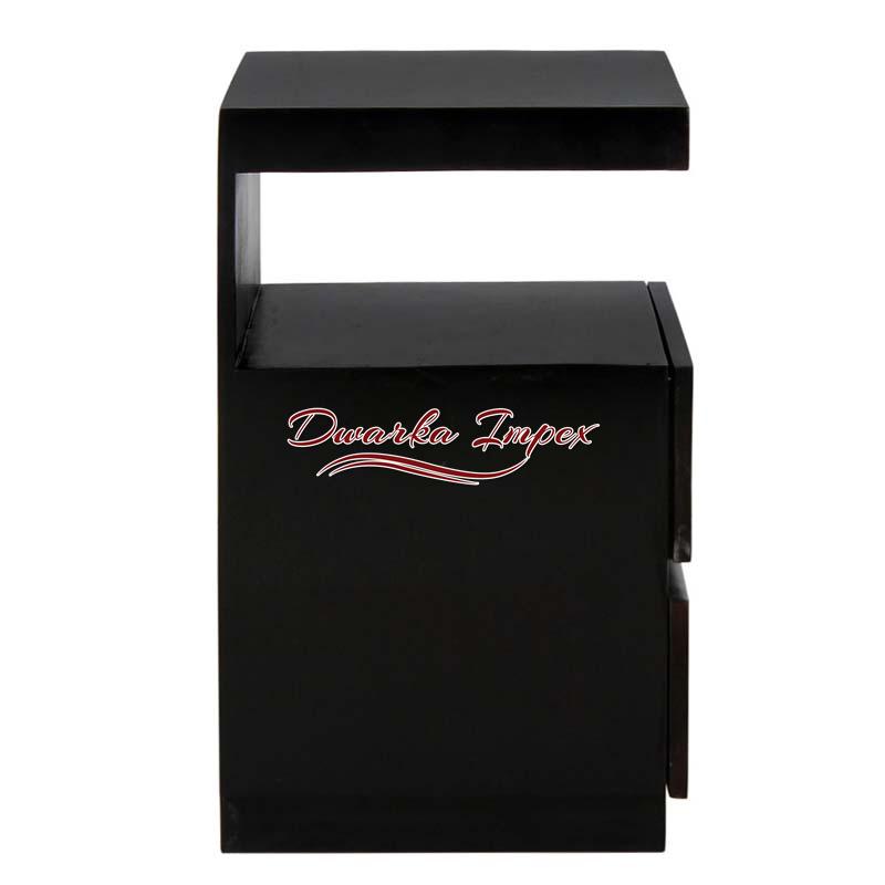 Pick this Snazzy Black Wooden Bedside Table to adore your bedroom. The magnificent bedside table has absolute black body and fascinating design. it comes with two drawers for storage and also has an open shelf to accommodate your belonging or decorative.