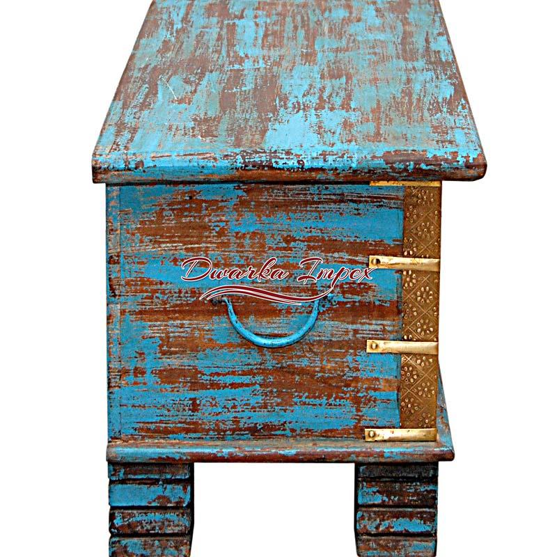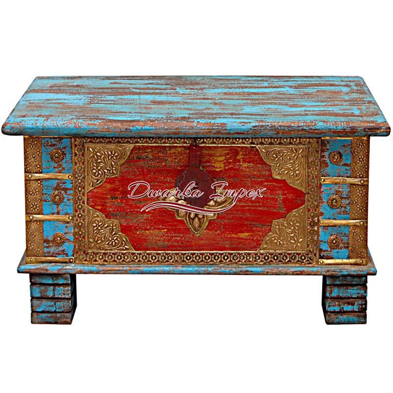 Stunning Wooden Hand Painted trunk box with Brass Fitting is a magnificent home decorative. It would not only add more grace to your home, but also provide you sufficient storage space. The striking wooden trunk is decorated with classic hand painting over exterior.
