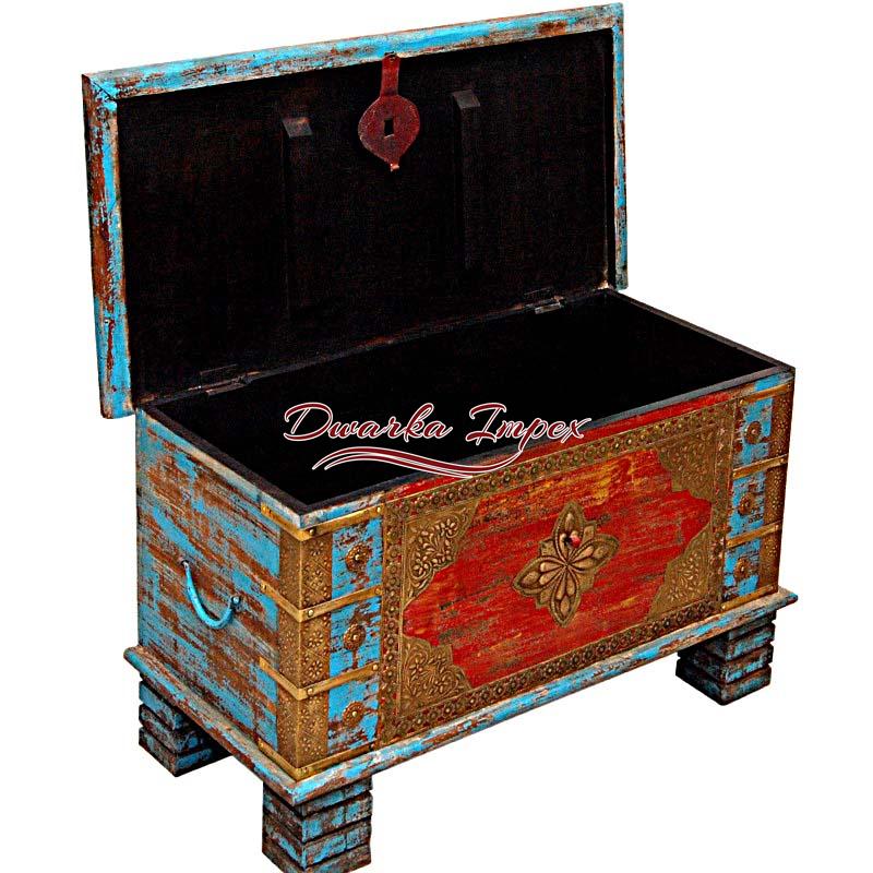 Stunning Wooden Hand Painted Trunk Box With Brass Fitting