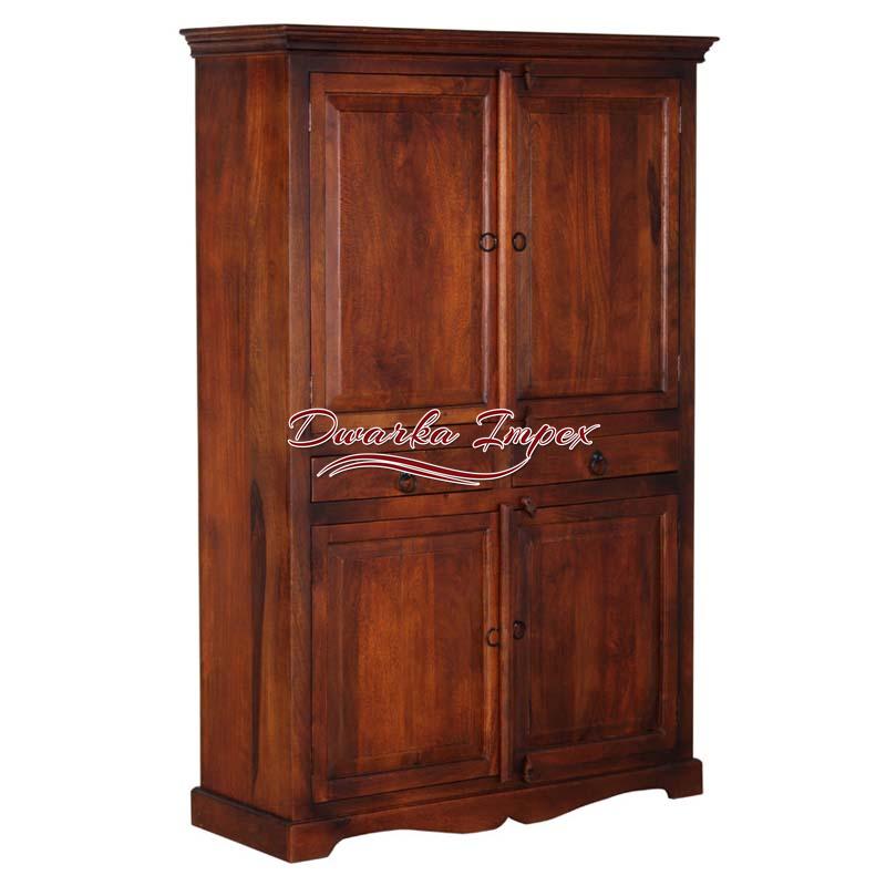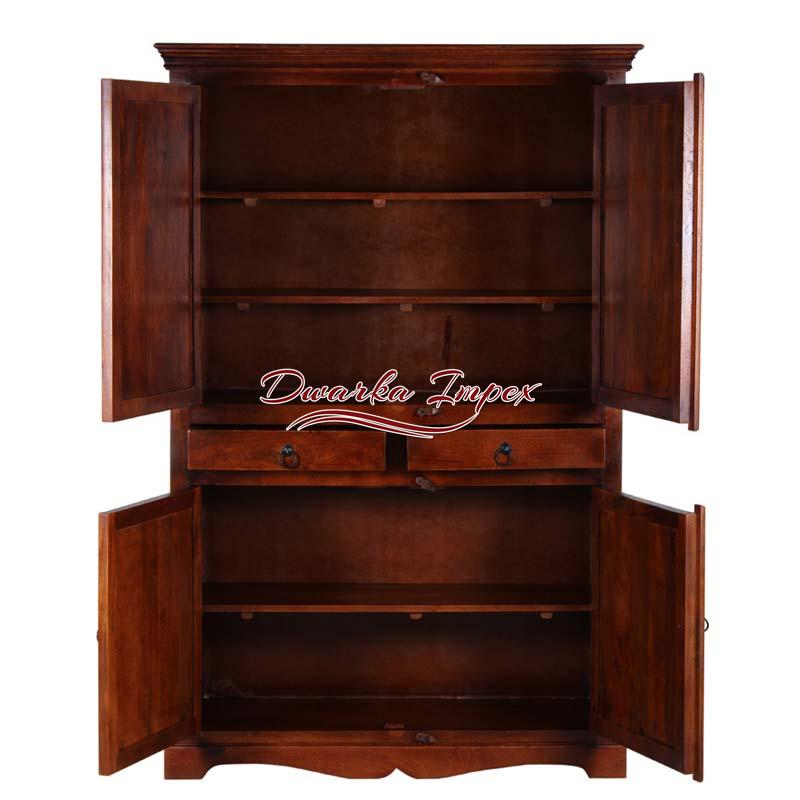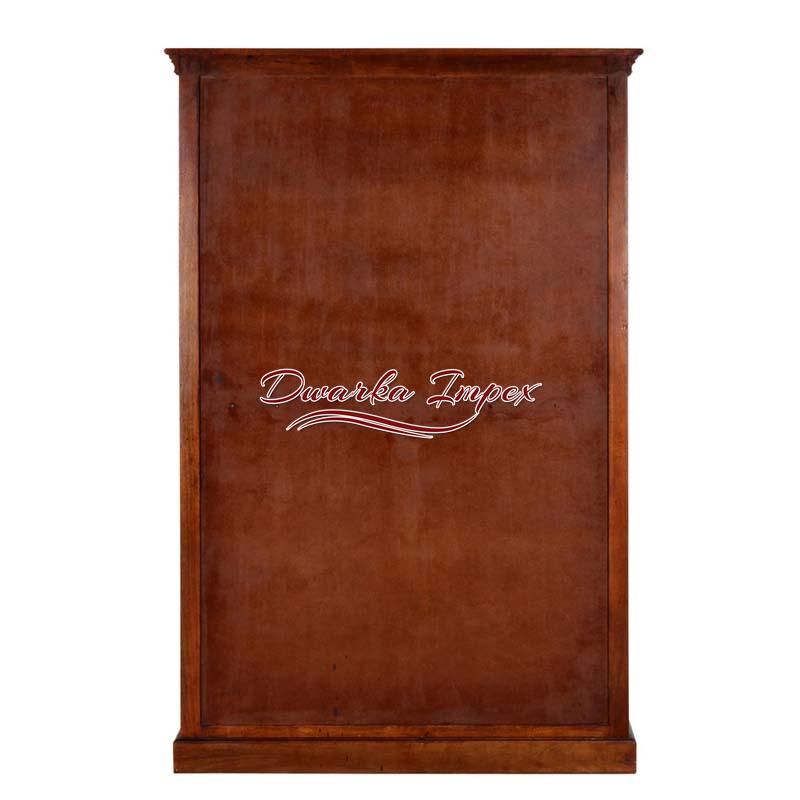 Stunning Wooden Wardrobe is an outstanding home furnishing for your bedroom. The adorable wooden wardrobe looks adorable with dark wooden finish, and metal fitting. It has little carvings at bottom, and offers enough space for storage.