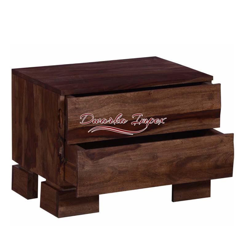 This Unique Wooden Bedside table would rejuvenate the overall effigies of your bedroom. Adorable bedroom furniture has natural wood finish on exterior and comes with tiny square-shaped legs. It comes with two drawers for store, and upholds a classic charm.
