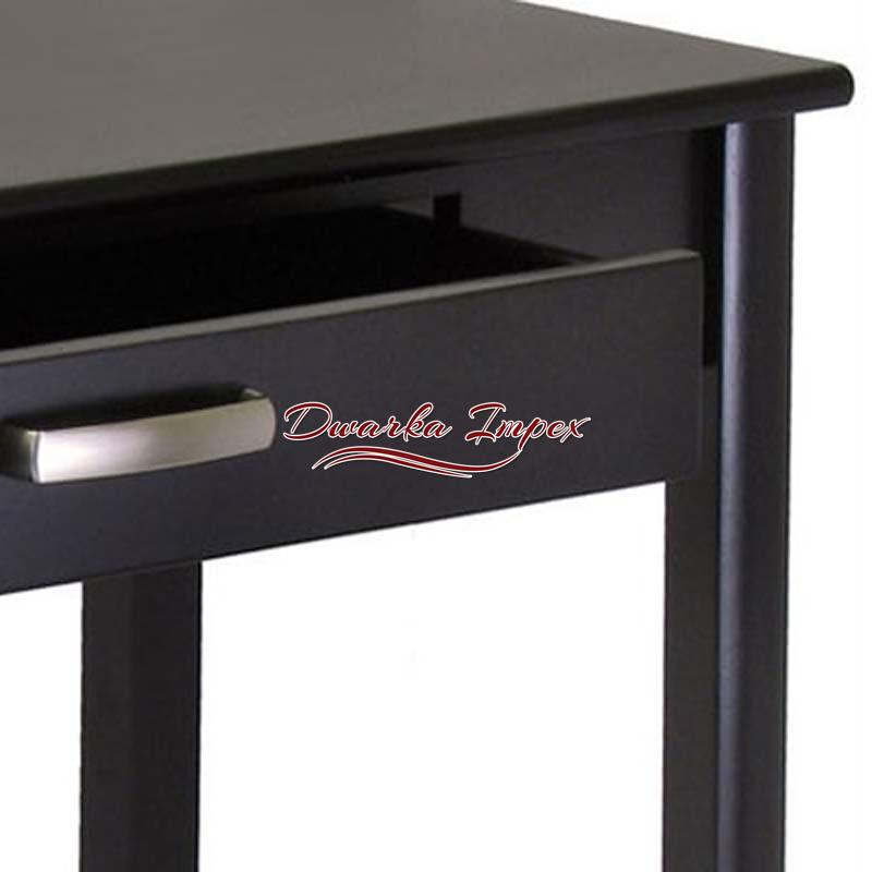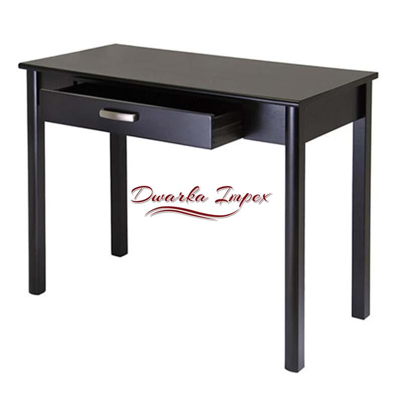 This wooden table is compact and classy. It is made of fine quality wood meant for strength and durability. It is polished with rich black smooth finish and has a drawer to facilitate easy management of books and files. It can be used efficiently for study, work or reading purpose with generous leg space, for easy long hours of work or study. It is ideal for small or space constraint homes.