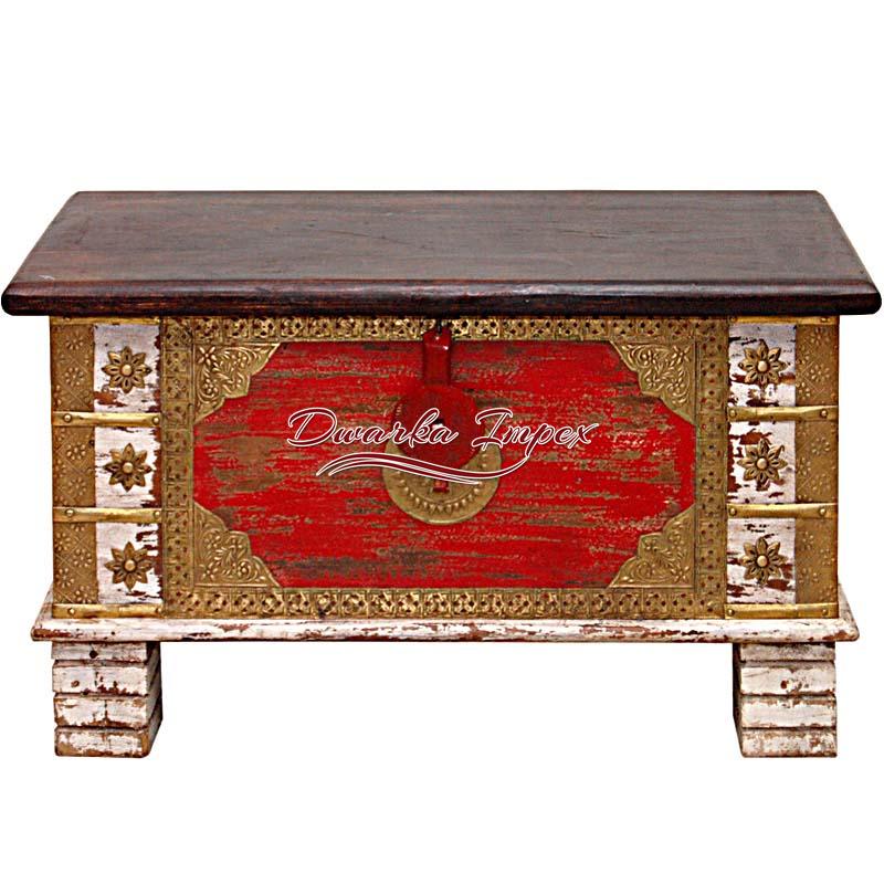 Wooden Hand Painted trunk box with Brass Fitting is a stunning and superlative home decorative furniture that not only beautify your home, but also provide you enough storage. It has attractive exterior.