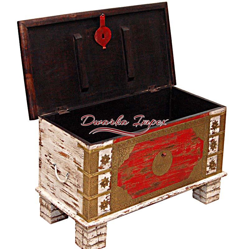 Wooden Hand Painted Trunk Box With Brass Fitting