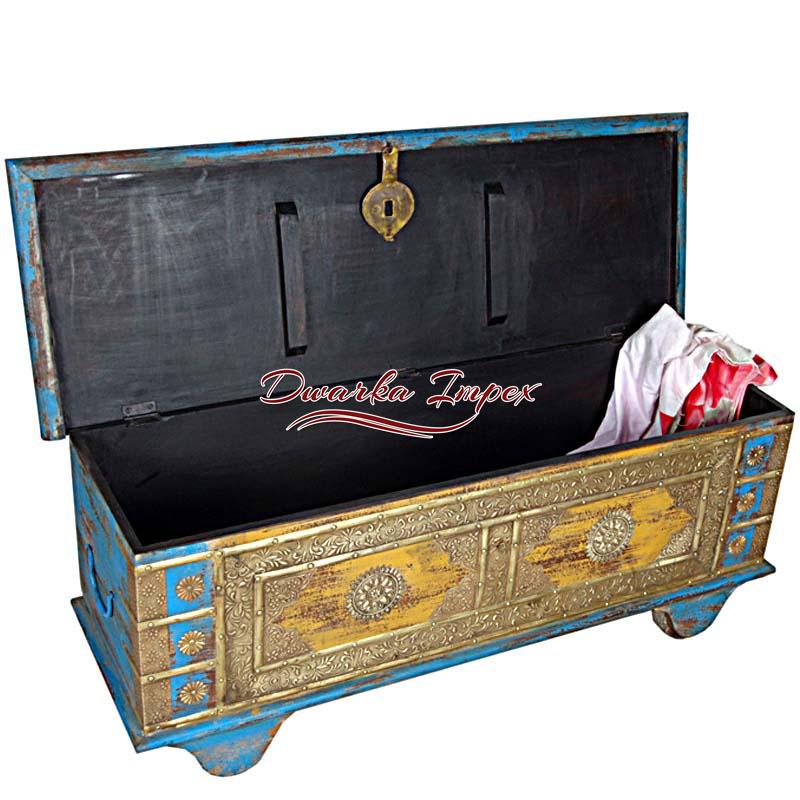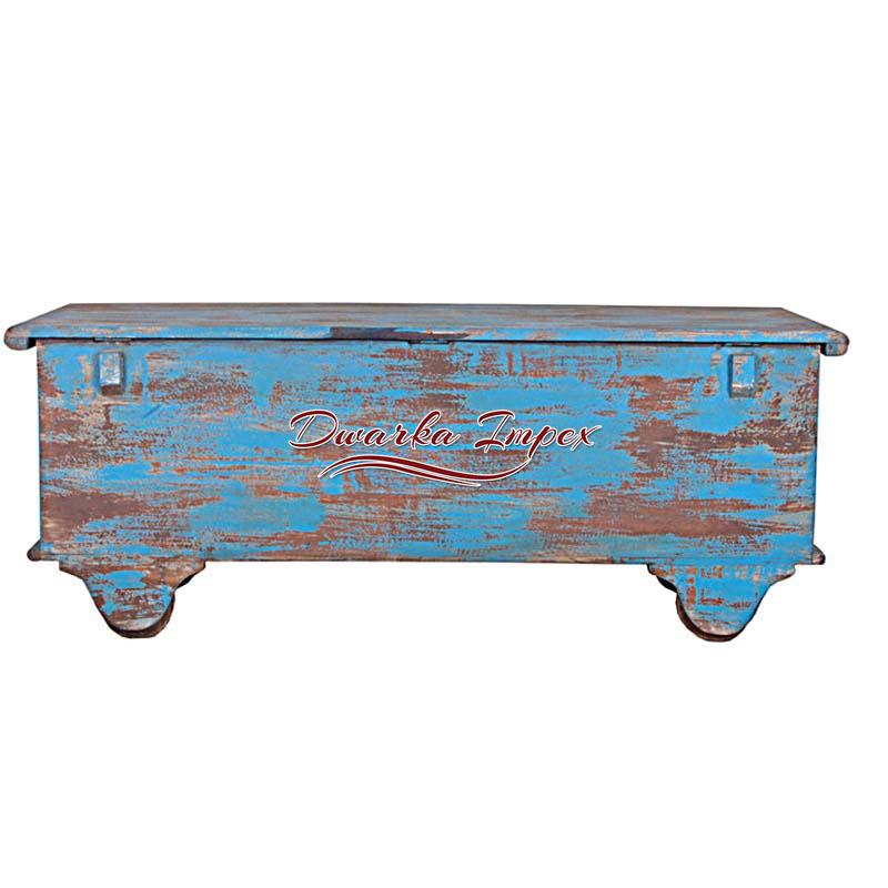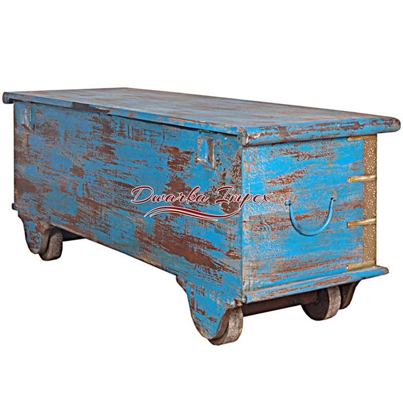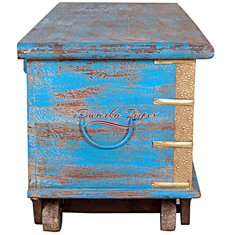 Wooden Hand Painted trunk Wheel box with Brass Fitting is a superlative home decorative furniture. The wooden trunk offers sufficient space for storage, and comes with wheel to facilitate easy movement.Note: This is Handcraft Item so each item will be different than other due to limitation of photography.