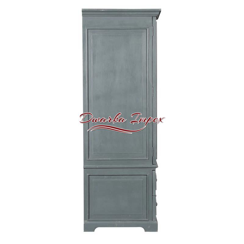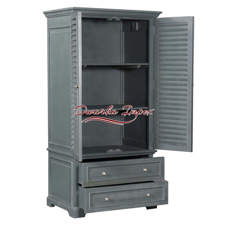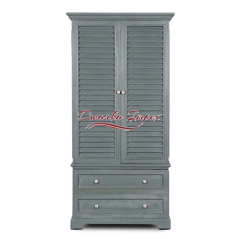 Wooden Wardrobe in Blinds Style is perfect for a contemporary bedroom. The adorable wooden wardrobe has unique gray shade on exterior and doors are designed in blinds styles. You will find two large drawers at the bottom to store your belonging properly.